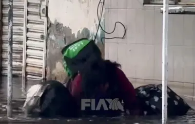 Mujer cae en aguas negras en Valle de Chalco y desata burlas en redes