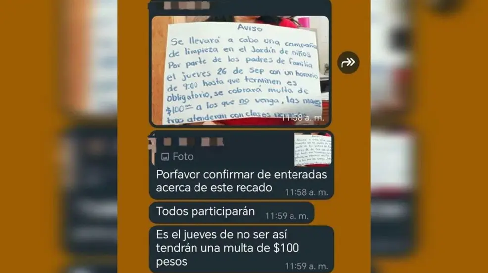 En la institución fue colocado un aviso en el que advierten que la ausencia será castigada con una multa de 100 pesos.