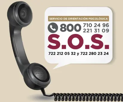 Los usuarios son atendidos de forma gratuita e inmediata a través de las líneas telefónicas 722-212-0532; 722-280-2324; 800-710-2496 y 800-221-3109, de lunes a viernes de 09:00 a 20:00 horas.