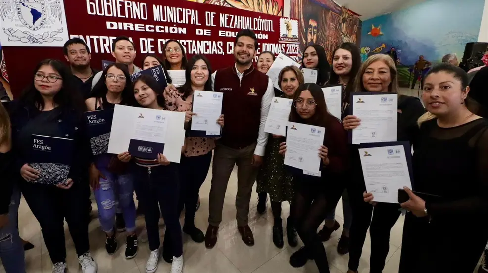 NEZAHUALCÓYOTL, Estado de México.- La Escuela Municipal de Lenguas e Idiomas de Nezahualcóyotl, resultado de la colaboración entre el Gobierno Municipal y la FES Aragón de la UNAM, acreditó satisfactoriamente a 41 alumnos de la primera generación del curso de inglés.