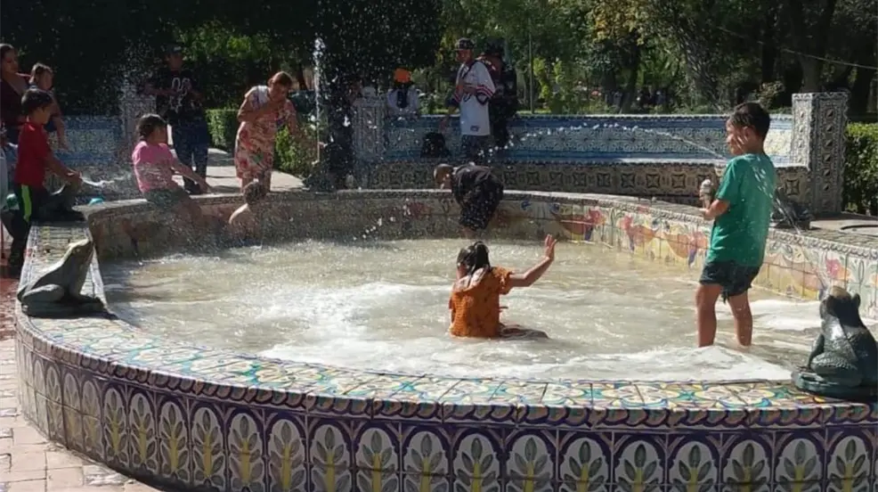 SALTILLO, Coahuila.- La falta de balnearios en la ciudad de Saltillo ha llevado a los residentes, especialmente a aquellos de colonias populares con recursos limitados, a utilizar espacios públicos con agua para combatir las altas temperaturas. Espacios como la fuente de la Gran Plaza, el lago de la Alameda y, más recientemente, la fuente de las ranas se han convertido en alternativas improvisadas para refrescarse.