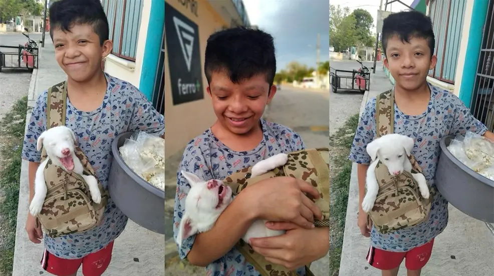 Las imágenes, compartidas por la usuaria Crisel Canché en redes sociales, rápidamente se volvieron virales, destacando la admirable determinación y el amor entre el niño y su perrito.