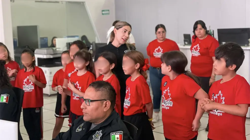 SALTILLO, Coahuila.- Niños y niñas del Maple College en Saltillo visitaron el Centro de Comunicaciones, Cómputo, Control y Comando (C4) y fueron bienvenidos por el secretario de Seguridad Pública, Federico Fernández.