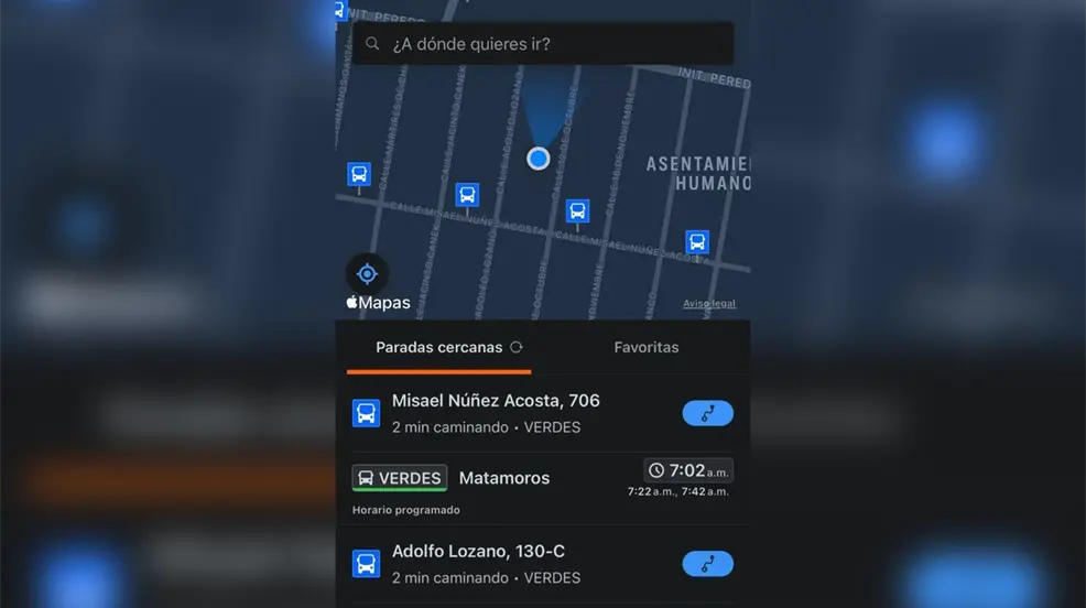 Dentro de la aplicación, podrás buscar las paradas de autobús en la que cada una de las diferentes rutas se detiene a tomar pasaje, así como el horario y tiempo de espera que tardará la siguiente ruta en pasar nuevamente por la parada.
