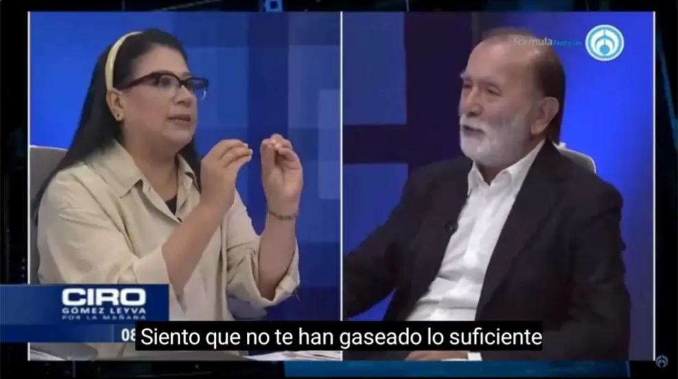 El altercado se intensificó cuando Ibarra, con tono burlón, le dijo a Moreno: “Siento que no te han gaseado lo suficiente”, lo que provocó su indignación. A lo que Gómez Leyva intervino, señalando: “Tú siempre has tenido la razón y hoy la tienes desde el poder; si alguien te contradice, la lastimas”.