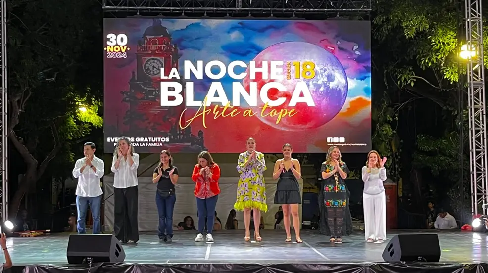 MÉRIDA, Yucatán.- Con un despliegue de creatividad, talento y cultura, la 18ª edición de La Noche Blanca: Arte a Tope llenó de vida las calles de Mérida este sábado. En un evento que reunió a miles de ciudadanos y turistas, la alcaldesa Cecilia Patrón Laviada encabezó la inauguración oficial en el emblemático Remate de Paseo de Montejo, marcando el inicio de una noche mágica y vibrante.