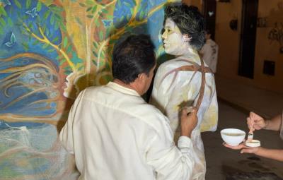 “Es body Paint que es pintura especial para el cuerpo y puedes tener cualquier pretexto para pintarlo, en este caso estamos usando a la ceiba y su relación con el ser humano, el personaje que tenemos en el cuadro simboliza al hombre y a la mujer y por eso elegimos de modelo a un hombre para que simbolice a la naturaleza de la ceiba para ver la relación entre el hombre y la naturaleza”, precisó.