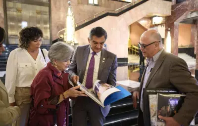 Durante su visita al Palacio de Bellas Artes, Villarreal Anaya también recorrió las instalaciones del recinto, admirando su arquitectura y los murales de artistas icónicos, en vísperas de los 90 años que celebrará este recinto cultural el próximo 29 de septiembre.