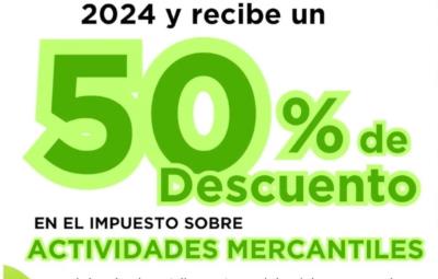 A partir del próximo año, se ofrecerá un descuento del 50% en el Impuesto sobre actividades Mercantiles a aquellos comerciantes que realicen el pago de su anualidad antes de que concluya marzo del 2024.