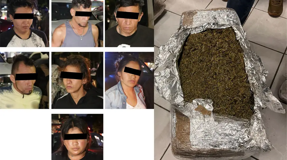 Operativo en la colonia Magdalena Mixhuca resulta en la detención de siete personas, una de origen venezolano, y el aseguramiento de 240 kilos de marihuana.