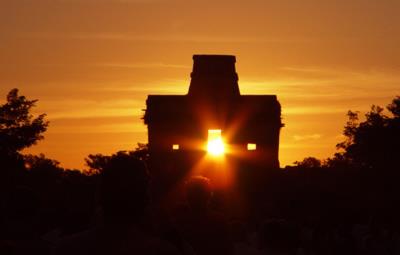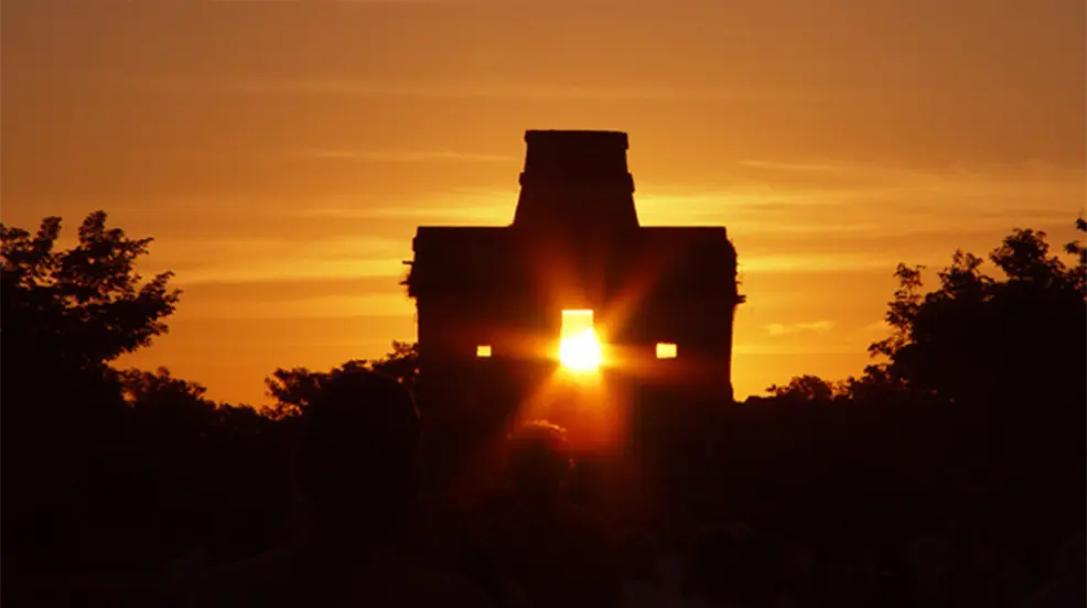 Otro de los sitios ideales para presenciar este fenómeno arqueoastronómico, es la zona arqueológica de Dzibilchaltún, en donde el sol ilumina la puerta del Templo de las Siete Muñecas, creando un espectáculo de luz y sombra en la fachada poniente.
