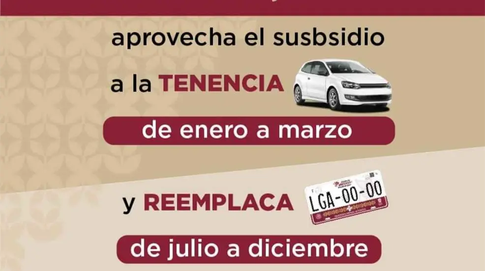 Otorgan subsidio del 100 por ciento en el pago de Tenencia vehicular del 1 de enero al 31 de marzo de 2024.