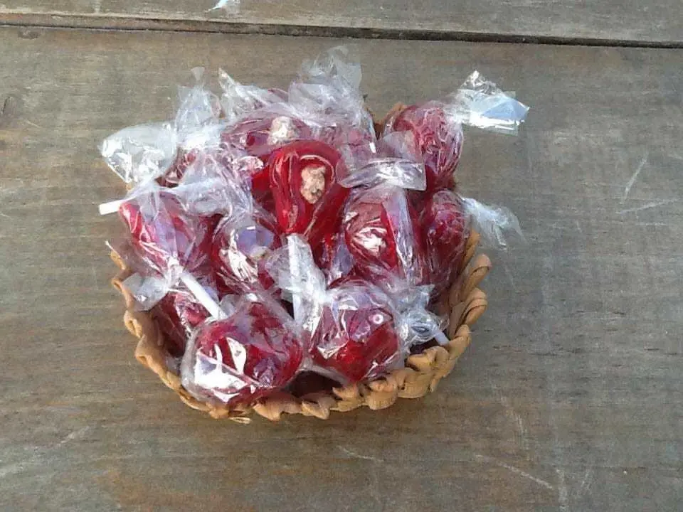 La paleta de saladito es un dulce de caramelo macizo sabor fresa, que en su centro lleva un rico 'saladito' hecho de ciruela de monte deshidratada cubierta con sal.