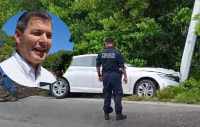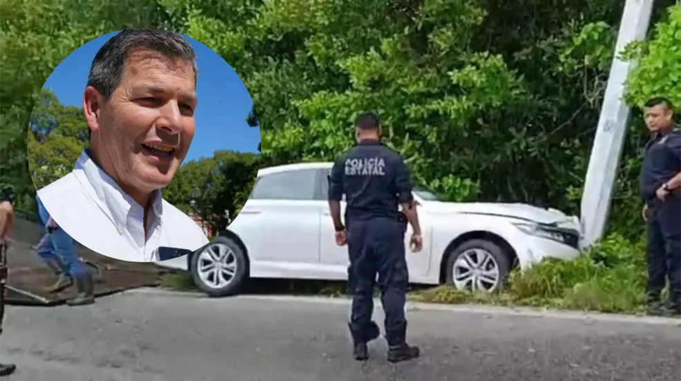 El hecho ocurrió la mañana de este viernes, cuando el exmandatario panista manejaba su automóvil, a la altura del kilómetro 4, rumbo al puerto y por el piso mojado perdió el control del volante y se salió de la vía, para terminar impactado en un poste de alumbrado público.