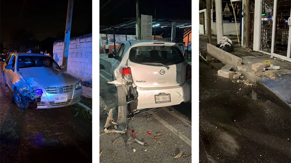 El incidente comenzó cuando el joven, que manejaba un Volkswagen Pointer, chocó contra un Nissan March estacionado frente a una taquería en la colonia Emilio Portes Gil. En su intento de huir, el conductor impactó contra el muro de un comercio cercano.