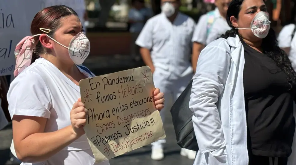 Mercy Sánchez, representante de los más de 300 afectados en todo el estado, dijo que cuando fueron contratados para trabajar en el área de Covid hace 4 años, el Gobierno Federal les prometió que les darían la base, lo cual no solo no ha pasado, sino que además les cambiaron sus condiciones laborales sin previo aviso.