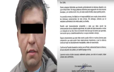 NAUCALPAN, Estado de México.- En una carta, la madre de Rodolfo “N” ofreció disculpas a Edith, mujer que fue golpeada por su hijo de 26 años tras un percance vial.