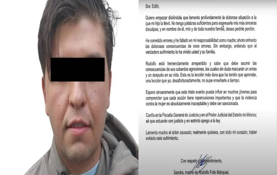 En una carta, la señora externó a Edith, que “Rodolfo está tremendamente arrepentido y sabe que debe asumir las consecuencias de sus agresiones, las cuales sin duda marcarán un antes y un después en su vida”.