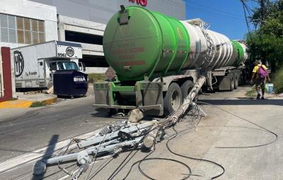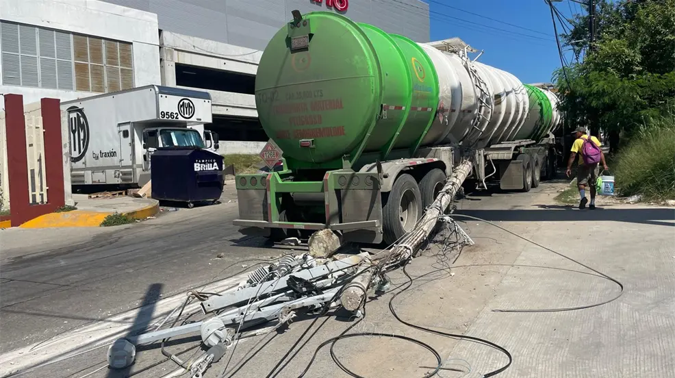 Pipa provoca caos al impactar postes y cableado de CFE en Tampico