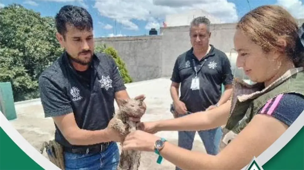 Policía Ambiental rescata a gatita del desagüe