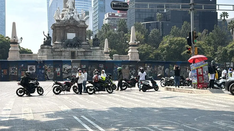 CUAUHTÉMOC, Ciudad de México. - Este lunes 14 de octubre, alrededor de la 1:30 de la tarde, repartidores de plataformas se reunieron en la glorieta de la columna de la Independencia en donde realizaron un bloqueo de todas sus intersecciones.