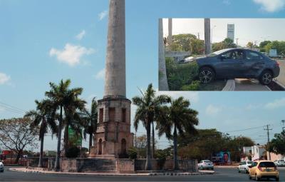 Tras el golpe en una de las puertas trasera del izquierdo, la mujer perdió el control del volante y se subió hasta detenerse frente unas plantas, antes de impactar contra la estructura de concreto del monumento. El aparatoso incidente no afectó la movilidad en la zona y los autos siguieron circulando con normalidad.