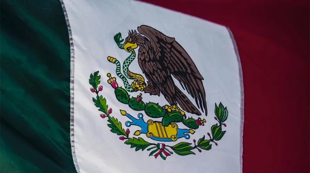 En el centro de la bandera se encuentra el escudo nacional, que muestra un águila devorando a una serpiente sobre un nopal. Esta imagen, basada en la leyenda azteca de la fundación de México-Tenochtitlan, simboliza la victoria sobre la opresión y la lucha por la libertad.
