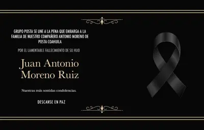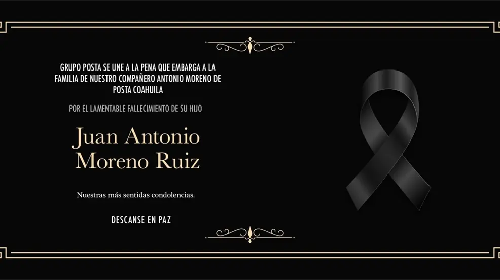 CIUDAD DE MÉXICO.- En Grupo POSTA CDMX nos unimos con profundo pesar a la tristeza que embarga a la familia de nuestro colega Antonio Moreno, integrante de POSTA Coahuila, por la pérdida de su hijo, Juan Antonio Moreno Ruiz.