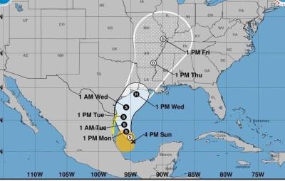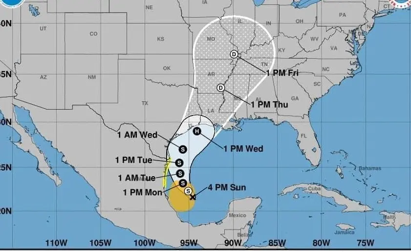 Se espera que este sistema se intensifique a tormenta tropical y se desplace cerca de la costa norte de Tamaulipas el martes, acercándose a la costa superior de Texas y Luisiana como huracán el miércoles.