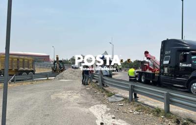 Se registra volcadura de tráiler tipo góndola en la autopista México-Pachuca en Tecámac.