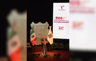 Acompañado de la presidenta del DIF Tamaulipas, María de Villarreal, hizo un balance sobre los dos años de su gobierno, destacando la regeneración de la vida pública y la transformación en busca de hacer de Tamaulipas una entidad más humanista.
