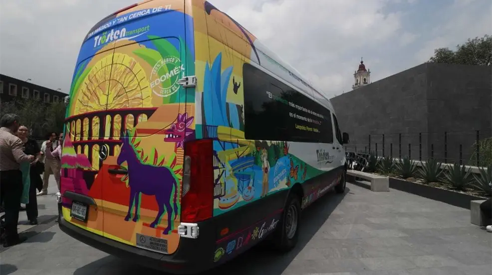 TOLUCA, Estado de México.- La Secretaría de Cultura y Turismo del Estado de México, en colaboración con la empresa de Transportes Trosten, presentó la nueva camioneta promocional de los Pueblos Mágicos de la entidad.