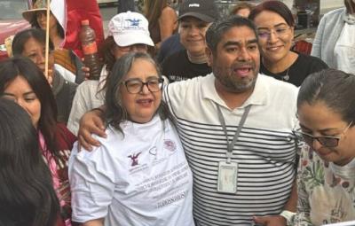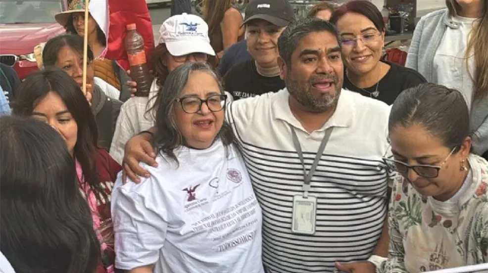 “El Poder Judicial no va a caer” y “Ese apoyo sí se ve” fueron las consignas que coreó la ministra junto con los trabajadores que se mantienen en el acceso que se encuentra sobre la calle Zapata.