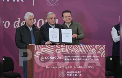 El presidente Andrés Manuel visitó el Polideportivo de el Parque Guadiana, que lució abarrotado de seguidores Morenistas, lugar donde anunció la próxima planta potabilizadora que se habrá de instalar en Durango, con una inversión que oscila entre los mil 200 millones de pesos, según lo confirmó el propio AMLO.