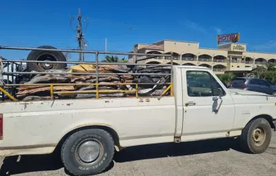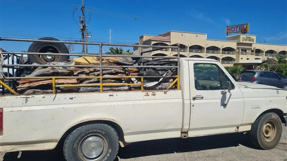 Policías detuvieron a Juan Evaristo 'N' de 25 años al circular en una Ford F-150 blanca por Forjadores transportando madera sin permiso, que dijo talar en San Bartolo, BCS.