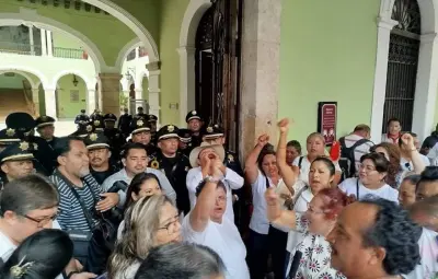 MÉRIDA, Yucatán.-Un grupo de trabajadores de la educación se manifestó en Palacio de Gobierno en la Ciudad de Mérida, exigiendo el establecimiento de un canal de diálogo con las autoridades locales y el gobernador Mauricio Vila. Cerca de 200 manifestantes partieron del parque de San Juan, marchando por varias calles del centro de la ciudad hasta llegar a la sede del Ejecutivo.