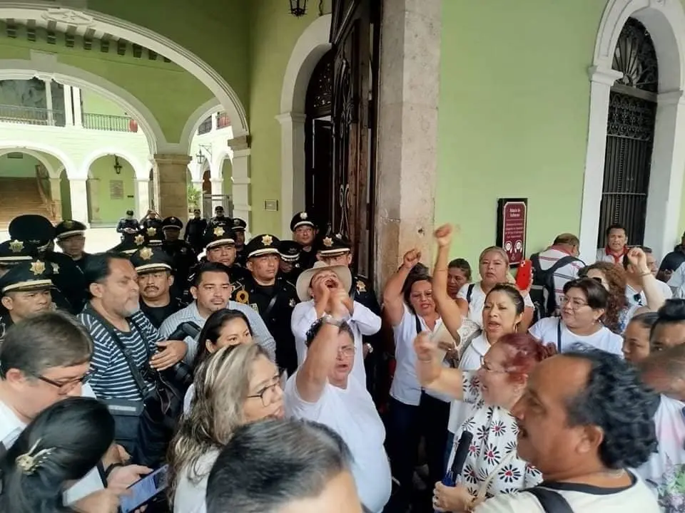 Profesores exigen diálogo con autoridades en el Palacio de Gobierno de Mérida
