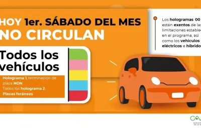 Para este primer sábado del mes, se establece la restricción para la circulación de vehículos con: