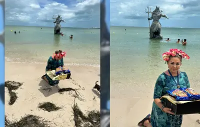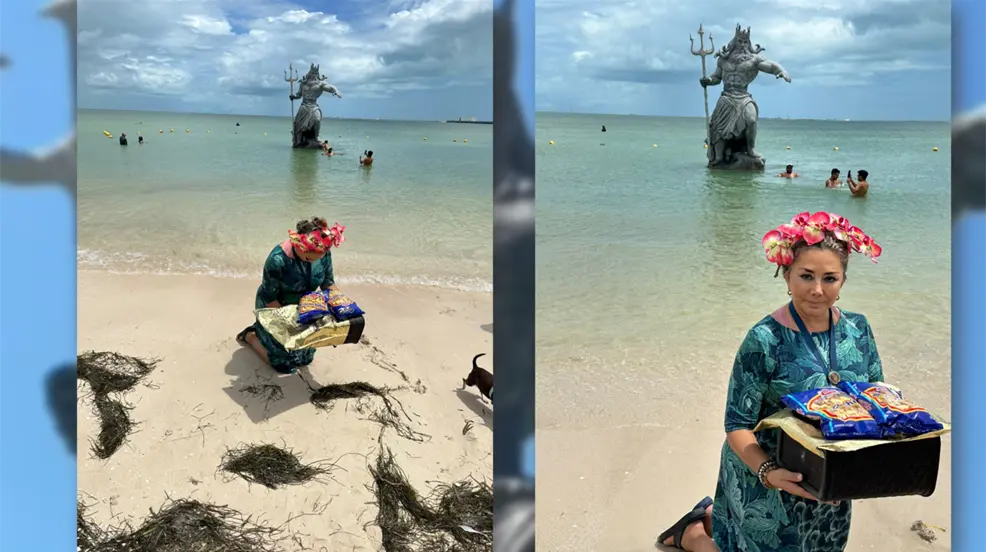 Progreseña lleva 'ofrenda' a Poseidón tras el paso de Beryl por Yucatán