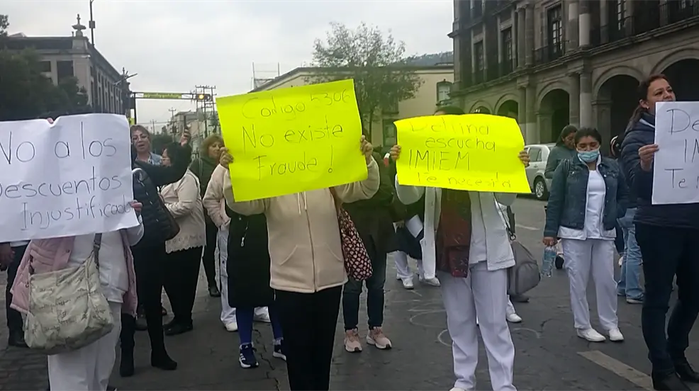 Personal del Instituto Materno Infantil del Estado de México sufrió un descuento del 50% de sus prestaciones, por lo solicitaron la intervención de la gobernadora Delfina Gómez.