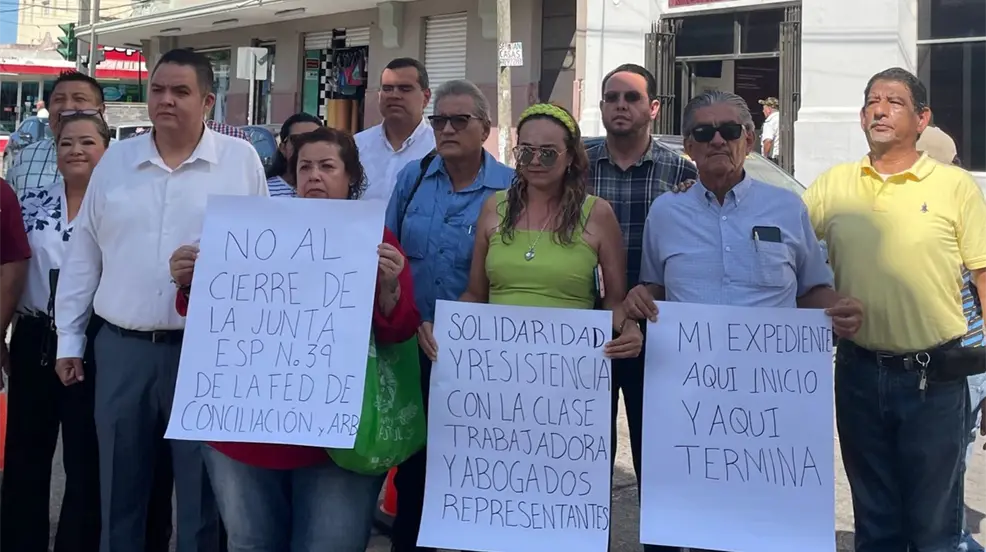 TAMPICO, Tamaulipas.- Los trabajadores y litigantes de la Junta Especial No.39 de Conciliación y Arbitraje se manifestaron la mañana de este miércoles, para mostrar su inconformidad por el cierre y traslado de esta junta, así como de los expedientes que se encuentra en trámite.