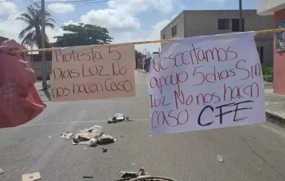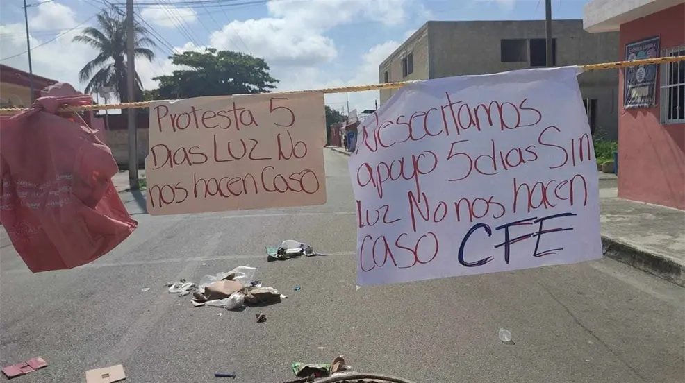MÉRIDA, Yucatán.- Debido a que llevan cinco días si energía eléctrica en sus casas, vecinos de la colonia Emiliano Zapata Oriente de Mérida mantienen cerrada la calle 33 x 42 y 44 en protesta para presionar a las autoridades a que solucionen el problema que los aqueja luego de las intensas lluvias que se han registrado recientemente.