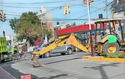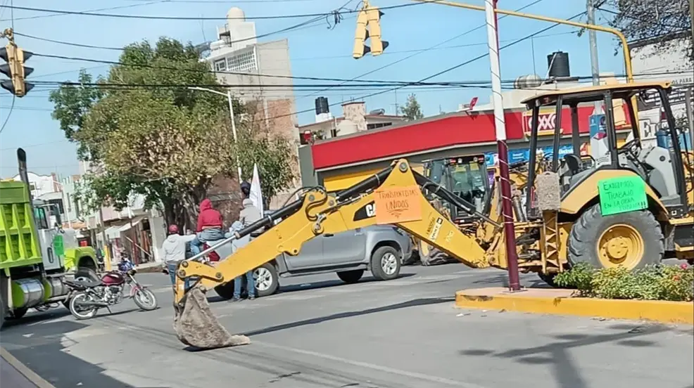 En su huelga pararon sus vehículos como excavadoras y camiones de volteo, para así obstruir por completo la vialidad en la zona centro de la localidad.