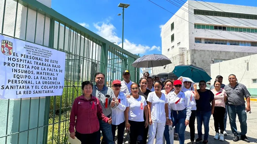TAMPICO, Tamaulipas.- Ante la falta de insumos sanitarios y de la reparación de la red de drenaje en el Hospital de Especialidades de Tampico 'Carlos Canseco', decenas de trabajadores protestaron para exigir a las autoridades les resuelvan estas situaciones.