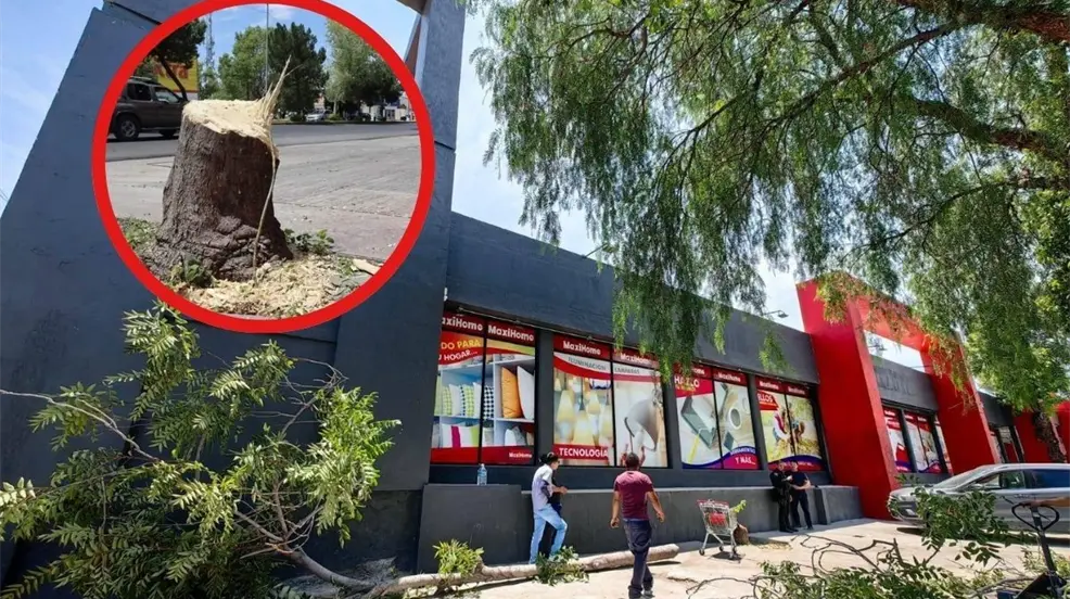 SALTILLO, Coahuila. - El pasado miércoles 7 de agosto, la tienda 'MaxiHome' desató la indignación de la comunidad al talar dos árboles sanos de más de 30 años de antigüedad en el bulevar Venustiano Carranza. Según los informes, la razón detrás de esta acción fue que los árboles obstruían la vista de la fachada de la tienda.