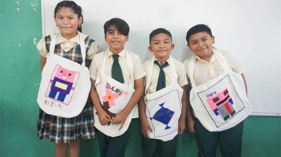 A través de la colaboración de madres de familia y artesanas locales, se lograron resultados en el aprendizaje de los alumnos, quienes diseñaron y elaboraron piezas como servilletas, bultos y bolsas de mano, entre otros.