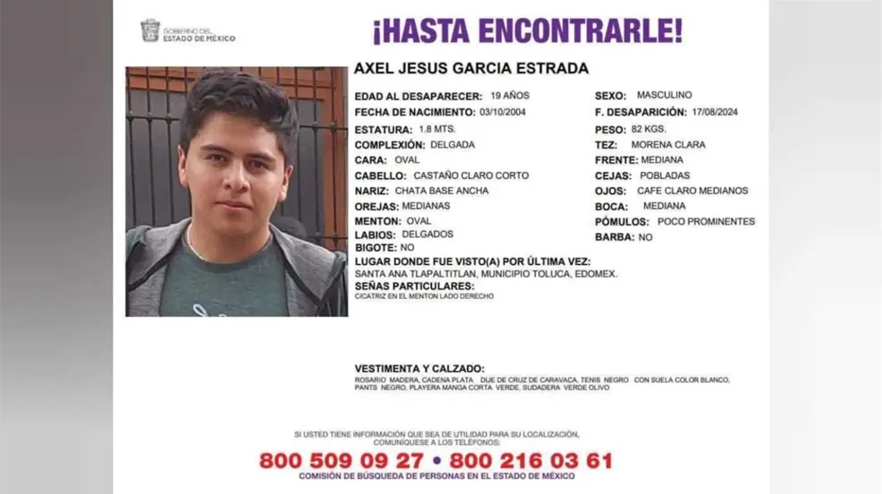 El secuestro ocurrió alrededor de las 22:30 horas del sábado, cuando Axel fue obligado a subir a la camioneta y llevado a un destino desconocido. La Fiscalía General de Justicia del Estado de México (FGJEM) continúa con las investigaciones y hace un llamado a la ciudadanía para colaborar con cualquier dato que pueda ayudar en la resolución del caso.