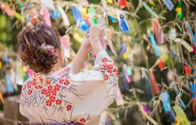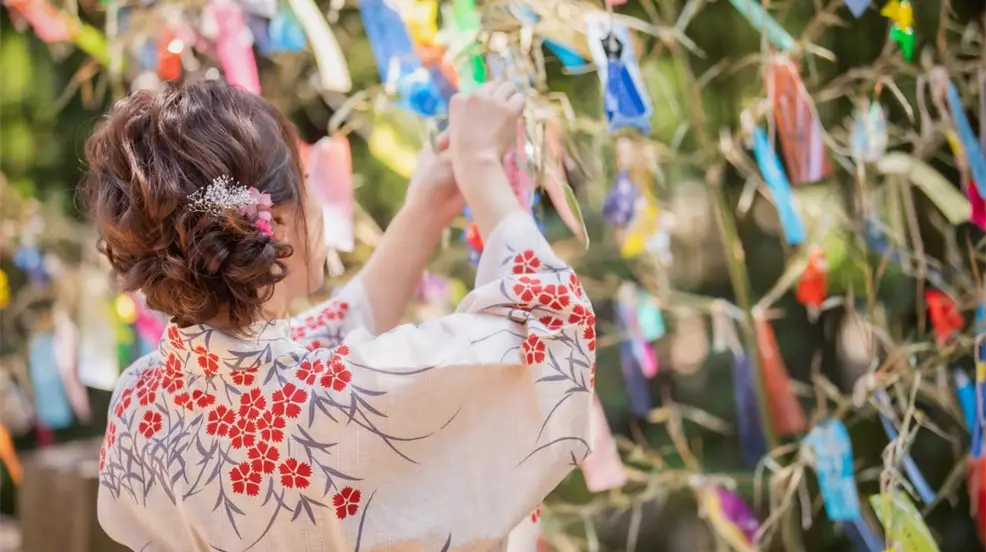 En Japón, el Tanabata se celebra el 7 de julio del calendario lunisolar. Durante esta festividad, las personas decoran sus hogares y calles con banderines de colores y tanzaku (tiras de papel con deseos), además de hacer ofrendas de comida como frutas y verduras.