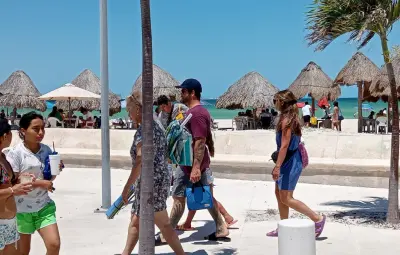 PROGRESO, Yucatán.- Desde el pasado viernes 22 de marzo, el puerto de Progreso y otros de la costa yucateca, como Sisal y Celestún, han registrado un aumento en su afluencia con motivo de las vacaciones de Semana Santa, lo que se ve reflejado por las playas abarrotadas de bañistas.