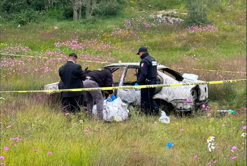 Los restos estaban en el interior de un automóvil Jetta blanco con placas de circulación LGX 359 B del Estado de México, que estaba incendiado.